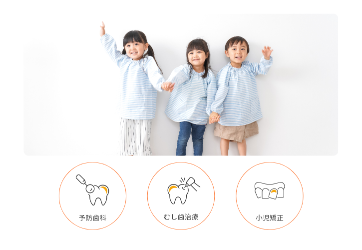 大人よりも歯が弱いお子様の歯は、予防が特に重要です。当院ではむし歯治療から歯並び矯正治療などお口の中の悩みにアプローチし、お子様の健やかな心身の成長をサポートします。