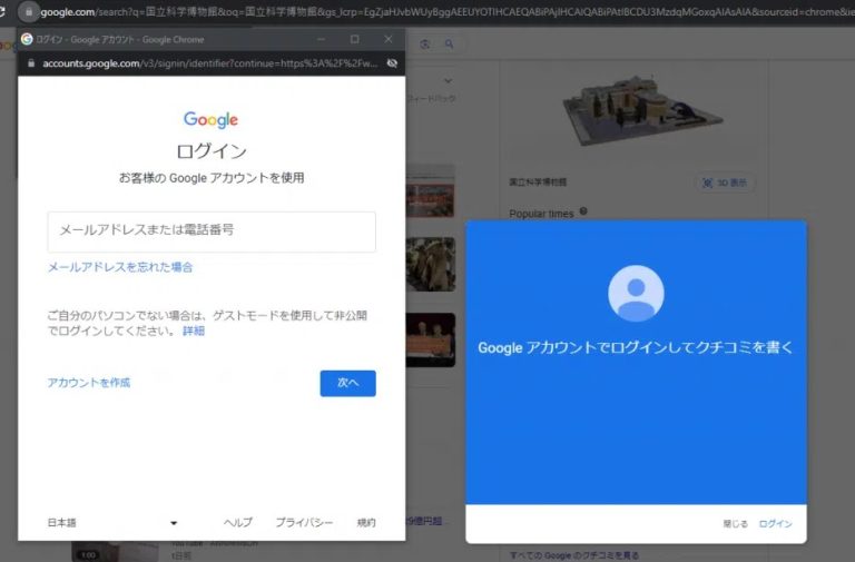 Googleアカウントへのログインを求めるポップアップが表示されます。