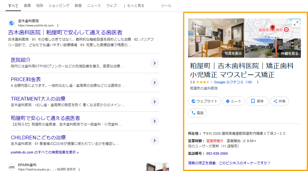 検索結果の右側に、ビジネスプロフィールが表示されます。